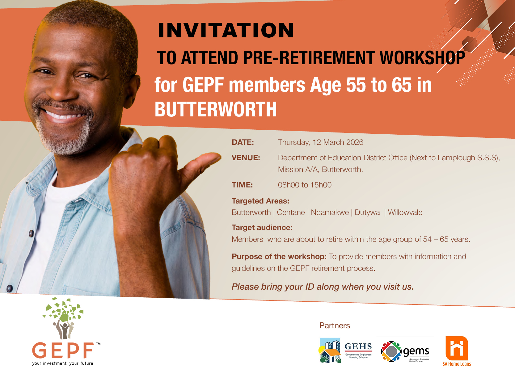 Purpose of the workshop: To provide members with information and guidelines on the GEPF retirement process.